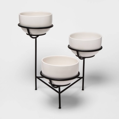 Ivory white cathedral ceramic planter on stand mid century planter set of 2 model.